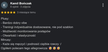 Cały system i proces treningowy jest dopasowany do Twoich możliwości, niezależnie od Twojego celu. Przez 3 lata pracowałem z wieloma różnymi osobami i nie spotkałem kogoś, kto by sobie nie poradził. I Ty również na pewno sobie poradzisz.