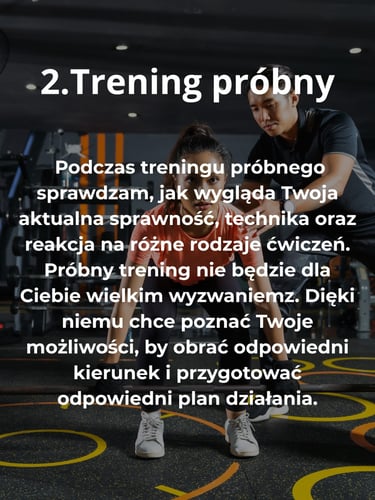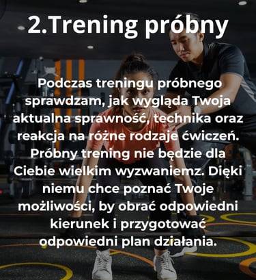 Każdy proces treningowy jest dostosowany do Twoich celów, potrzeb i możliwości. Nieważne czy jesteś osobą średniozaawansowaną czy dopiero zaczynasz swoją przygodę z treningiem – trening będzie uszyty na miarę Twoich możliwości, tak żebyś mógł stawać się coraz sprawniejszy krok po kroku.